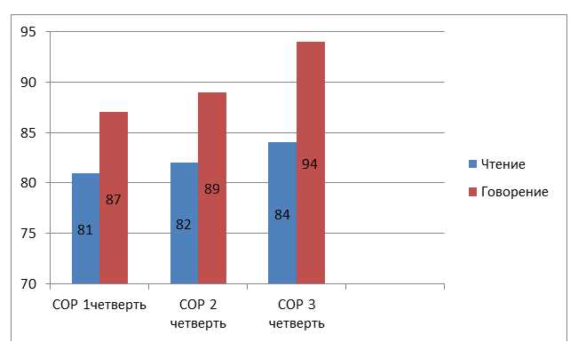 Сравнивая результаты работы с несплошными текстами на проведённых уроках с результатами предыдущих уроков, можно заметить небольшой прогресс в выполнении учащимися заданий по чтению и на составление устного аргументированного высказывания. Если на суммативных оцениваниях по разделам в 1 и во 2 четвертях процент правильного выполнения заданий по навыку ЧТЕНИЕ составлял 80-82% и по ГОВОРЕНИЮ – 87-89%, то, проанализировав результаты выполнения заданий по навыкам ЧТЕНИЕ и ГОВОРЕНИЕ в 3 четверти, мы увидели повышение показателей на 2-5%. По нашему мнению, систематические поиски различных методов и приёмов с целью улучшения результатов работы с несплошными текстами приводят к продвижению, пусть даже небольшому.