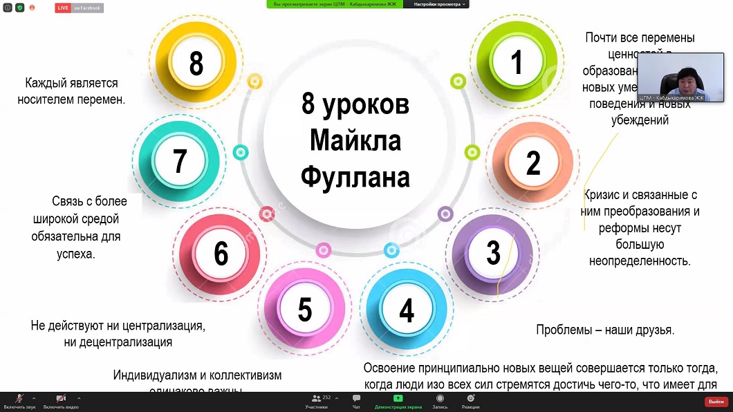Конференцияға қатысушылар Назарбаев Университеті Жоғары білім беру мектебінің профессоры Дуйшон Шаматовтың баяндамасына үлкен қызығушылық танытты, онда мектепте ынтымақтастық мәдениетін нығайту моделіне талдау жасалды. Киев педагогикалық университетінің әлеуметтану зертханасының меңгерушісі Наталья Бельская баяндама жасап, дағдарысты басқаруда типологияны қолдану мүмкіндіктерін ұсынды. Сингапурде орналасқан MentorEd International компаниясының негізін қалаушы Лилия Мухаметшина мектептегі әдістемелік көшбасшылықтың болашағы туралы айтты. Екатеринбург қаласындағы № 210 гимназияның директоры Алексей Бабетов әлемдегі басты IT экожүйелеріне және білім берудің жетекші шешімдеріне шолу жасады.