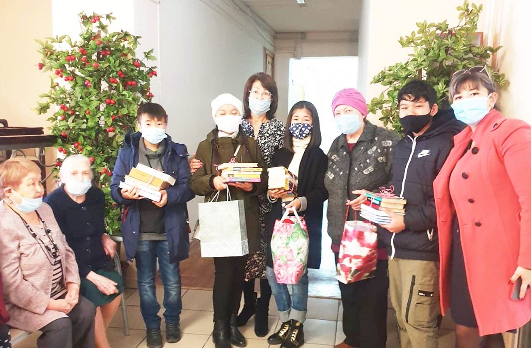 Қарттар үйі «Хан тәңірі» шаңырағымен әлеуметтік серіктес. Осы серіктестіктің арқасында кейінгі жас толқын аға буынның көңілін жай ғана аулап қана қоймай, мүмкіндігінше қолұшын беріп келеді. – Екіжақты меморандум аясында жұмыс жасап келеміз. Бұл жолы біз қарияларымыздың сұрауы бойынша шытырман оқиғалы 43 дана көркем әдебиет кітаптарын сыйға тарттық. Бұдан бөлек, ісмер әжелерімізге деп 50 дана тоқыма жібін апардық. Қарттар үйі басшылығымен ақылдаса отырып, алдағы уақытта қай бағытта жұмыс жасайтындығымыз шешілді. Жоспарымызда 30 түп гүл көшеттерін отырғызу мен онлайн концерт қою, сондай-ақ жылдың әр мезгілінде қарттар үйінің ауласына сенбілік жасау сынды жұмыстар бар. Бұл жолғы сапарымызда карантиндік талаптардың барлығын сақтай отырып, балалар мен өзге де адамдардың денсаулығына залал тиместей сақтық шаралары қатаң ойластырылды, – дейді «Хан тәңірі» шаңырағының жетекшісі, педагог-ұйымдастырушы-куратор Ақлима Мэлсқызы.