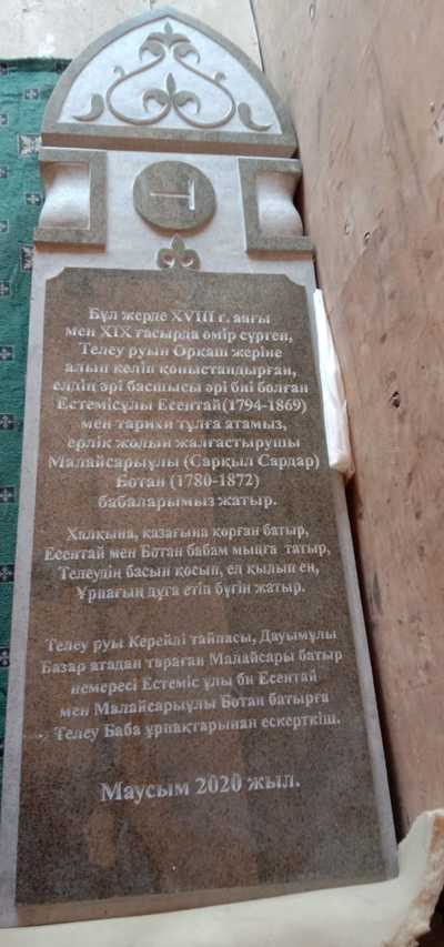 – Я вкратце рассказал только о некоторых своих земляках, наших предках, – говорит Марат Махамбетов. – Их жизненный путь и судьбы всегда будут служить для нас примером и предметом гордости. Светлая память им и вечный покой. В данное время продолжаются поисковые работы по восстановлению шежіре — генеалогической родословной, ведется поиск архивных данных и сбор устных преданий, песен и легенд. Открыт общественный благотворительный фонд. 20 июня 2020 г. со всех регионов Казахстана съехались представители рода Телеу, чтобы почтить память знаменитых предков. Были установлены гранитные памятники Толысбай батыру, Есентай бию и Ботан батыру в местах их захоронения. Обсуждены дальнейшие планы по восстановлению утерянных страниц истории края.