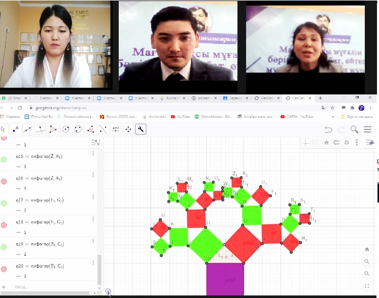 №185 ЖББМ КММ-де МИФ бірлестігі онкүндігі аясында математика ғылымдары магистрлары Г.Ауэлбекова, Л.Оразбек және С.Тулеухасымның бірлесуімен “Синхронды, асинхронды сабақтарда GeoGebra, Classroom және Edpuzzle бағдарламаларын тиімді пайдалау” – шеберік сыныбы ұйымдастырылды. Шеберлік сыныбында математика сабақтарында динамикалық бағдарламалар мен ақпараттық платформалар оқушылардың функционалдық сауаттылығы мен сандық сауаттылығын қалыптастыруы секілді өзекті тақырыптар қозғалды. Шеберлік сабағынын басты мақсаты – оқушыларды қашықтан білім алуда аталған бағдарламаларды қолдана отырып тақырыптарды сапалы меңгеру, есептер шығару және зерттеушілікпен айналысуға дайындау.