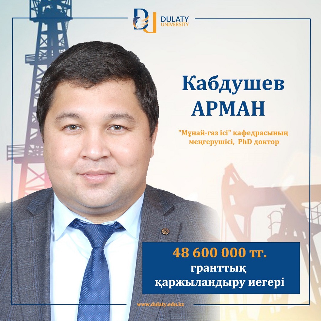 Қазақстан Республикасы Білім және ғылым министрлігінің Ғылым комитеті 2021-2023 жылдарға арналған ғылыми және ғылыми-техникалық жобалар бойынша гранттық қаржыландыру конкурсына өтінімдер қабылдаған болатын. Нәтижесінде М.Х. Дулати атындағы Тараз өңірлік университеті, “Мұнай-газ ісі” кафедрасының меңгерушісі, PhD доктор Қабдушев Арман Арыстанғалиұлы “Дифференциалды қасиеттері бар тампонажды ерітінділер әзірлеу” тақырыбындағы жобасы үздік деп танылып, жобаны жүзеге асыру үшін 48,6 млн теңге арнайы грант бөлінді, – деп хабарлайды осы жоғары оқу орнының баспасөз қызметі.