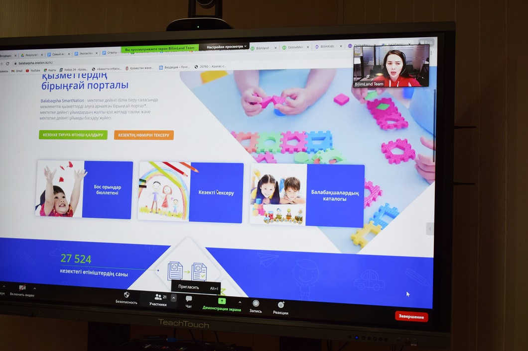 Облыс бойынша санитарлық-эпидемиологиялық бақылау Департаментінің жасөспірімдер мен балалар гигиенасы бөлімінің басшысы Г.Наурзалина «Карантин кезіндегі санитарлық–эпидеомиологиялық талаптар» бойынша баяндама жасады, Bilimland Group маркетинг департаментінің мамандары «Bilim kids. Мектепке дейінгі ұйымдарында қашықтан оқыту жүйесі» тақырыбында мектепке дейінгі тәрбиелеу мен оқыту саласының педагогтеріне, тәрбиеленушілері мен ата-аналарына арналған оқыту платформасын кеңінен насихаттап, қолдану жолдарын түсіндірді.