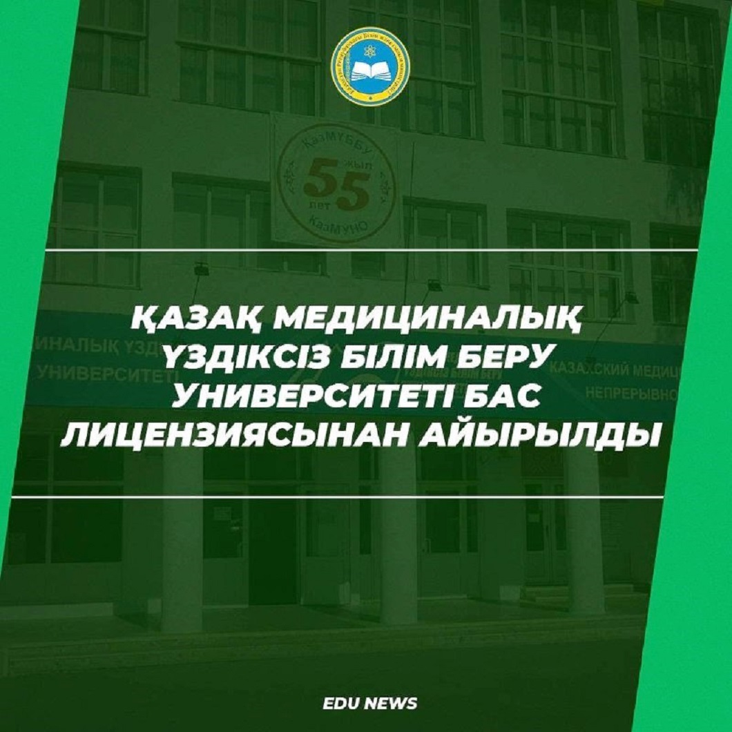 Қазақ медициналық үздіксіз білім беру университеті Алматыдағы дәрігерлердің біліктілігін жетілдіру ұйымының базасында 2015 жылы құрылғанын айта кеткен жөн. Бүгінгі таңда аталған оқу орнында 3 мыңнан астам студент оқиды. – Еліміз бойынша 14 жоғары оқу орны болашақ дәрігерлерді дайындайды, оның бесеуі Алматы қаласында орналасқан. ҚазМҮББУ-да оқыған студенттердің гранттары сақталады және олар басқа жоғары оқу орындарына ауыстырылады. Оқу құны өзгермейді. Сондай-ақ оқытушыларды жұмысқа орналастыру мәселесі жеке қарастырылып жатыр, – деп атап өтті Гүлзат Көбенова. Бас лицензиядан айыру туралы сот шешімі 10 жұмыс күнінен кейін заңды күшіне енеді және жоғары оқу орны білім беру қызметін тоқтатуға міндетті болады.
