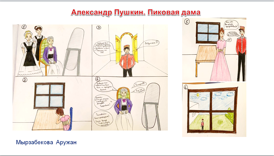 – Комикс – кітап пен киноны байланыстыратын сала. Оқушылар шығарманы түсініп оқи отырып, эстетикалық талғаммен креативті комикс жасап шығарған, – дейді қазылар алқасының мүшесі , орыс тілі пәнінің мұғалімі Айгүл Талғатқызы. Бұл байқау оқушылардың кітап оқуға деген қызығушылығын арттырып, шығармашылық ойлау дағдысын дамытуға үлкен септігін тигізе. – Көркем шығарманы оқып қана қоймай, комикс әлеміне алғашқы қадамдары, көркем туындылары мені қуантты. Алдағы уақытта жыл сайын байқау ауқымын кеңейте отырып, тұрақты түрде ұйымдастыру туралы ой туды, – дейді жоба координаторы Ақбота Жұмабаева.