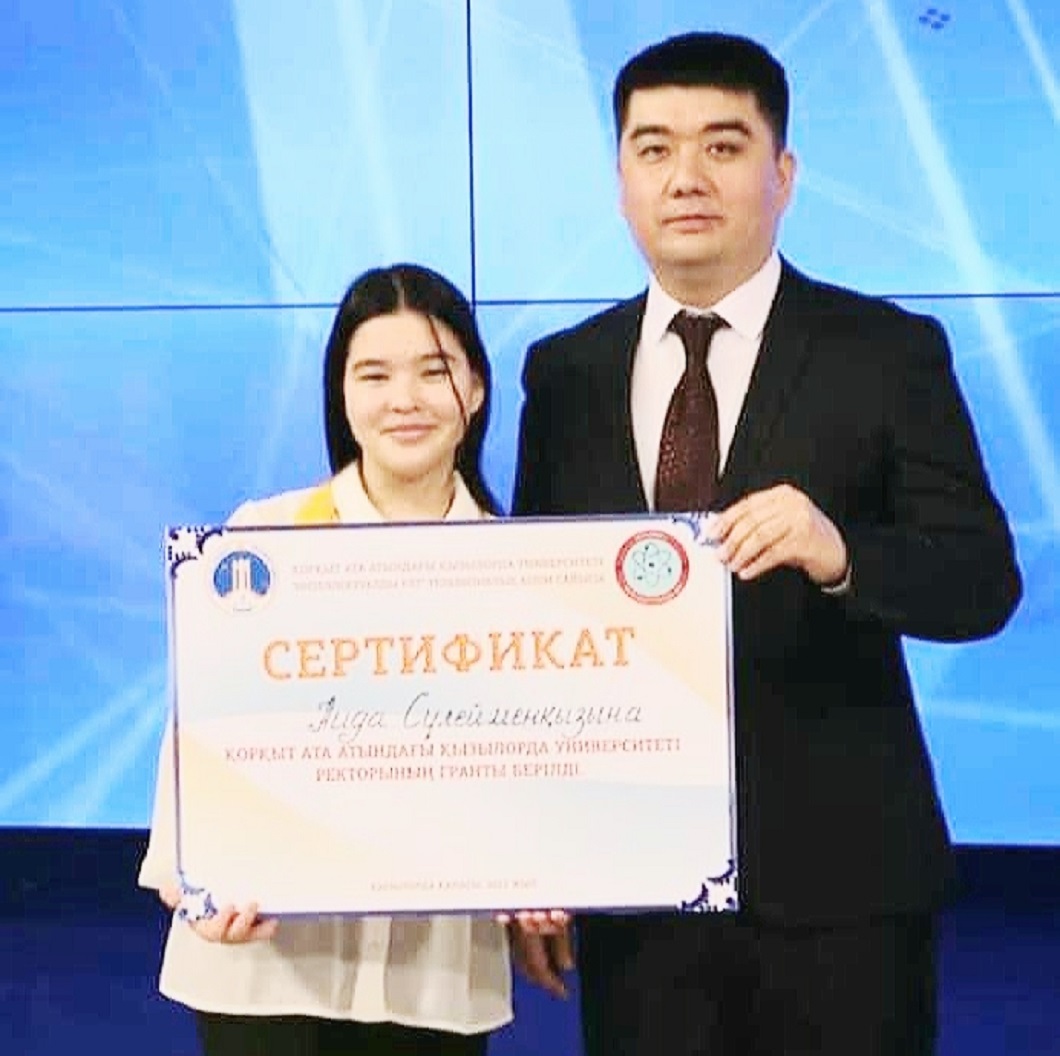 Интеллектуалдық сайыста облыстың дарынды, білімді жастарынан топ жарып, финалдық кезеңде үздіктердің үздігі болған Қазалы ауданындағы №102 мектептің 11-сынып оқушысы Аида Сүлейменқызы Қорқыт ата атындағы мемлекеттік университетінің ректор грантына ие болды. Аида Сүлейменқызы – Алтын белгіге үміткер зерделі оқушы.