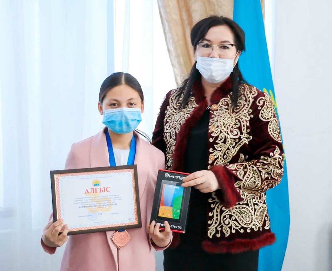 С.Сейфуллин атындағы №4 ІТ мектеп-лицейдің 8 сынып оқушысы Қарақат Балмұханова «Орта жастағы жасөспірім қыздар 800 метр» бағытында ІІІ орынға лайық деп танылды. Жеңімпаздарды облыстық білім басқармасының басшысы Ақзира Қасымова қабылдап, әлемдік додаларда қарсыластарын шаң қаптырып, биік белестерді бағындырған оқушыларға сәттілік тілеп, құрмет көрсетті. Басқарма атынан жеңімпаз оқушыларға электронды оқулықты сыйға берді. Сондай-ақ, жаттықтырушысы Марат Мұратбековке марапат табыстады.