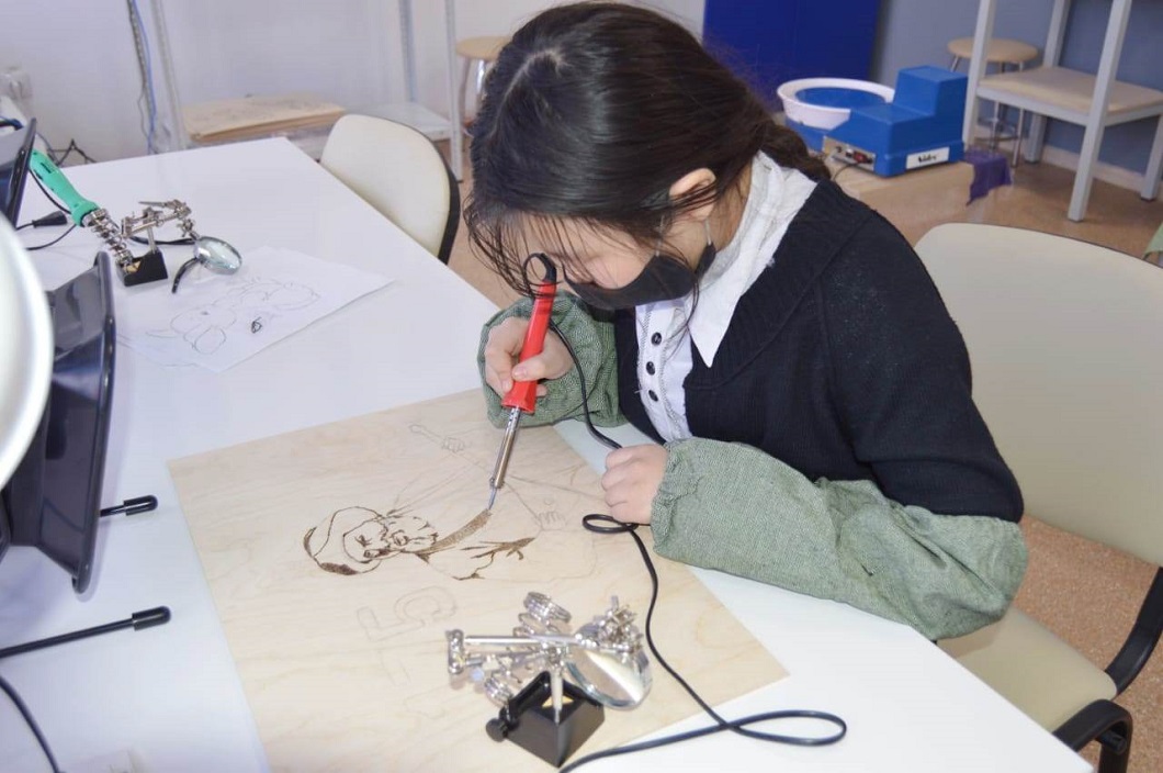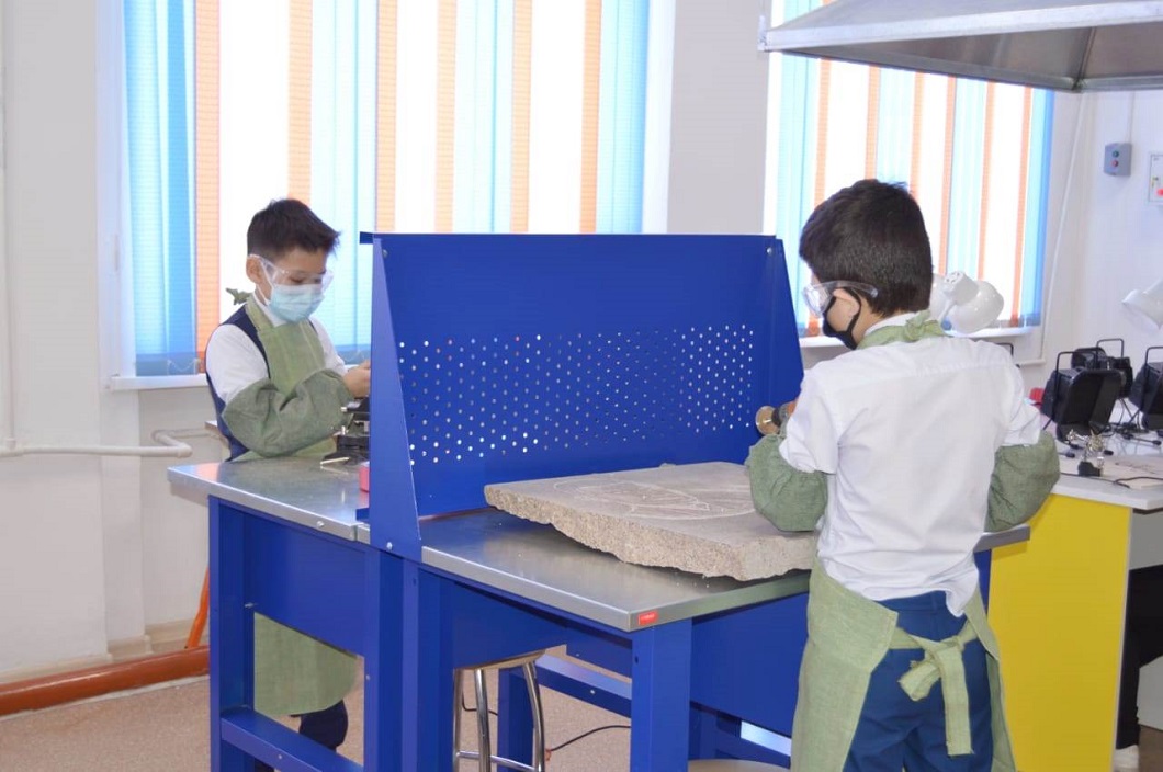 Қажетті құрал-жабдықтардың көмегімен металл мен ағашты өндеу арқылы түрлі тұрмыстық бұйымдармен қатар басқа да көркем әрі тың дүниелерді жасауға жағдай жасалған. Сондықтан оқушылар аралау, сүргілеу, фрезерлеу, бұрғылау айналдыра жону, тегістеу амалдарын қолданып, суретті өз салатын 3 д модельдеу бойынша жаңаша білім алады. Дыбыс жазу студиясы өнерлі өрендердің вокалдық қарым қабілеттерін дамытуға таптырмас мүмкіндік. Таспаға жазылған дыбыс таза шығады. Техникалық тұрғыдан дұрыс өңделген дауыстың тұнық әрі әсем әуенмен әрленері даусыз.
