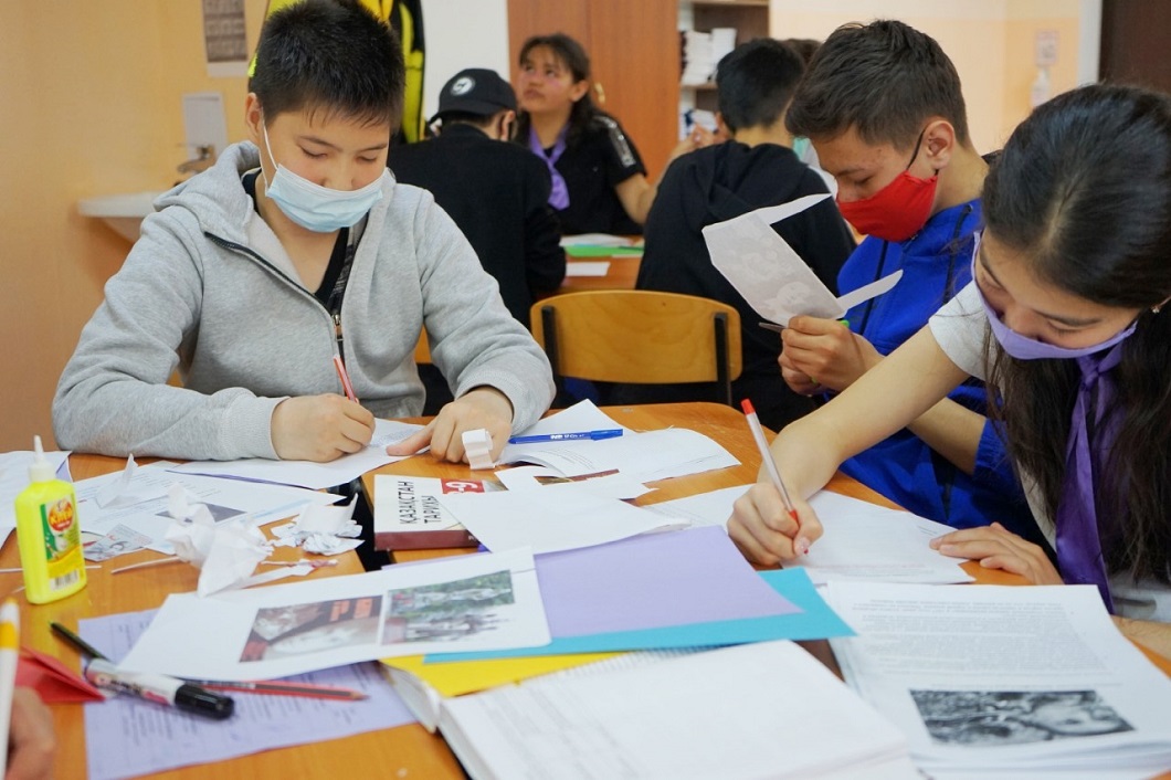2020 жылдың 1 мамыр айындағы дерек бойынша біздің елімізде 1025 Ұлы Отан соғысының ардагерлері бар. Өскелең ұрпаққа «Жеңіс» пен «Тәуелсіздік» аталарымыздың қан мен терінен келгенін ұғындыру, қазіргі Қазақстан Республикасы жеткен белестері мен шыңдарының қандай күшпен және кімдердің арқасында келгеніне, өз елінің тарихына түсінік беру мақсатында 5-ауысым аясында 8-сынып оқушылары үшін «Ұлы Отан соғысының іздерімен: қазақстандықтардың үлесі» атты желілік білім беру модулі өтті.