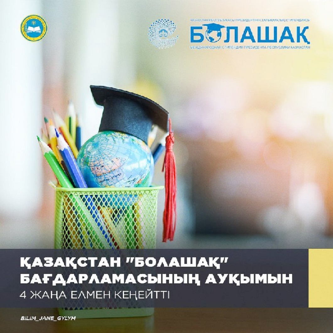 Қазақстанда “Болашақ” білім беру бағдарламасы аясында студенттерді оқыту ауқымы төрт елге кеңейтілді. Олардың қатарына Австрия, Чехия, Ирландия және Оңтүстік Африка кірді. Сондай-ақ тізімге Гонконг (Қытай) қосылды, – дейді ҚР Білім және ғылым министрлігінің баспасөз қызметі.