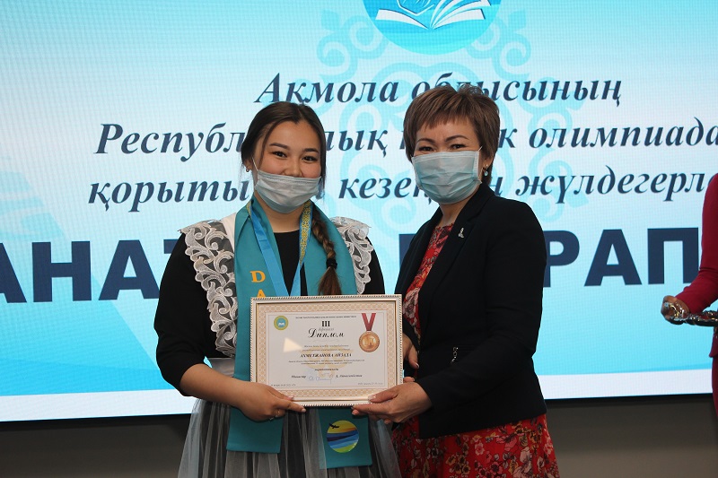 В ней приняли участие 73 учащихся из Акмолинской области. Это призеры областного этапа из Аршалынского, Астраханского, Атбасарского, Буландынского, Бурабайского, Ерейментауского, Есильского, Зерендинского, Целиноградского, Шортандинского районов, лицея «Білім-инновация», областных специализированных школ-интернатов для одаренных детей №2, № 3, № 4, городов Кокшетау и Степногорск. Торжественную церемонию вручения наград победителям Республиканской олимпиады по общеобразовательным предметам 2020-2021 учебного года провела заместитель руководителя управления образования Акмолинской области Б. Б. Дюсенова. В своем приветственном слове поздравила олимпийских чемпионов и пожелала им новых побед, в том числе и на международной арене.