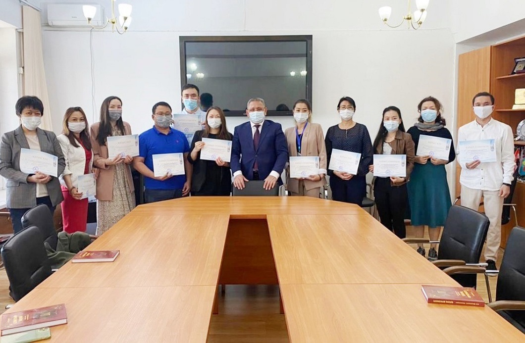 Загрузка...Университет қызметкерлеріне отандық екпе бойынша құжаттарды дайындау және сертификациялаудағы адал еңбегі, белсенді азаматтық ұстанымдары үшін Әл-Фараби атындағы ҚазҰУ-дың Басқарма Төрағасы – Ректоры Жансейіт Түймебаевтың Құрмет грамотасы мен Алғыс хаты табысталып, арнайы сый-сияпат көрсетілді.