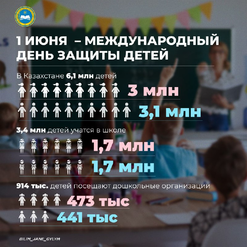В Казахстане проживают 6,1 млн детей до 18 лет, из них 3 млн девочек и 3,1 млн мальчиков, передает пресс-служба МОН РК.