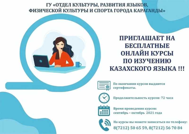 – Курсы предназначены для взрослых от 18 лет и старше. В одной группе будет 20 человек. Занятия пройдут в онлайн-формате. По окончании курсов по результатам экзаменов выдаются сертификаты, – рассказала главный специалист отдела культуры и развития языков Улжан Борибаева.
