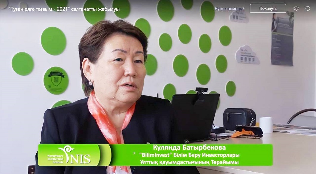 «Туған елге тағзым – 2021» экспедициясының жеңімпаздары мен қатысушыларын «Назарбаев Зияткерлік мектептері» дербес білім беру ұйымының Басқарма Төрайымы Күләш Шәмшидинова құттықтады: – Экспедицияға ұсынылған жобалардың тақырыбы жыл сайын кеңейіп, деңгейі артып келеді. «Туған елге тағзым» жобасы академиялық білімді арттыруға және зерттеу жетістіктерін дәлелдеуде теңдесіз платформаға айналды. Экспедицияда ұсынылған жұмыстардың барлығы жалғасын табуға лайық, ал жеңімпаздар мен жүлдегерлердің жобалары патенттер мен авторлық құқықтарға ие бола алады деп сеніммен айта аламын.