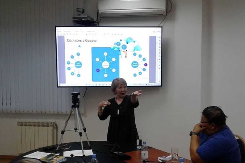 К примеру, преподаватель посредством фонетических и грамматических аналогий в казахском, английском, немецком и французском языках учила бизнесменов правильно произносить специфические казахские звуки и ставить ударение в словах.