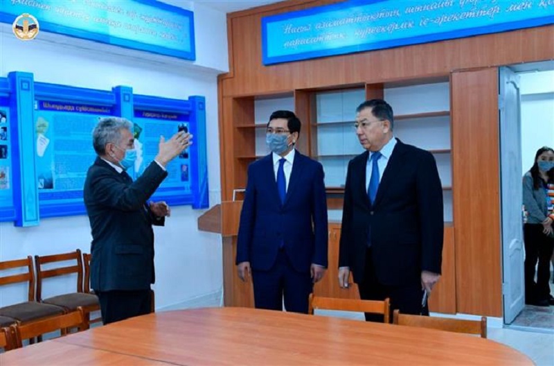 Председатель Правления – Ректор КазНУ им. Аль-Фараби Жансеит Туймебаев ознакомил министра с результатами ремонтных работ, выполненных в университете в текущем году. Министр осмотрел капитально отремонтированные учебные здания и обновлённые аудитории.