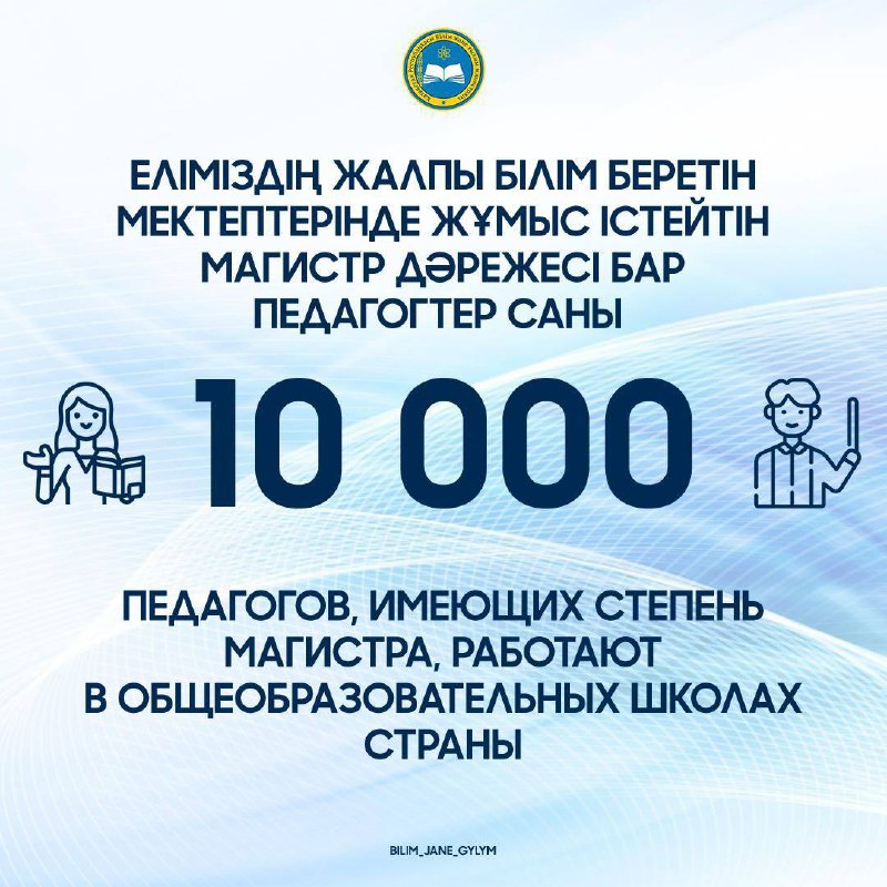 До 10 тысяч возросло число казахстанских педагогов, имеющих степень магистра. Ранее их количество составляло 5 тысяч человек. Благодаря принятию Закона «О статусе педагога» и доплатам за магистерскую степень, число педагогов-магистров за последние два года увеличилось вдвое, передает пресс-служба МОН РК.