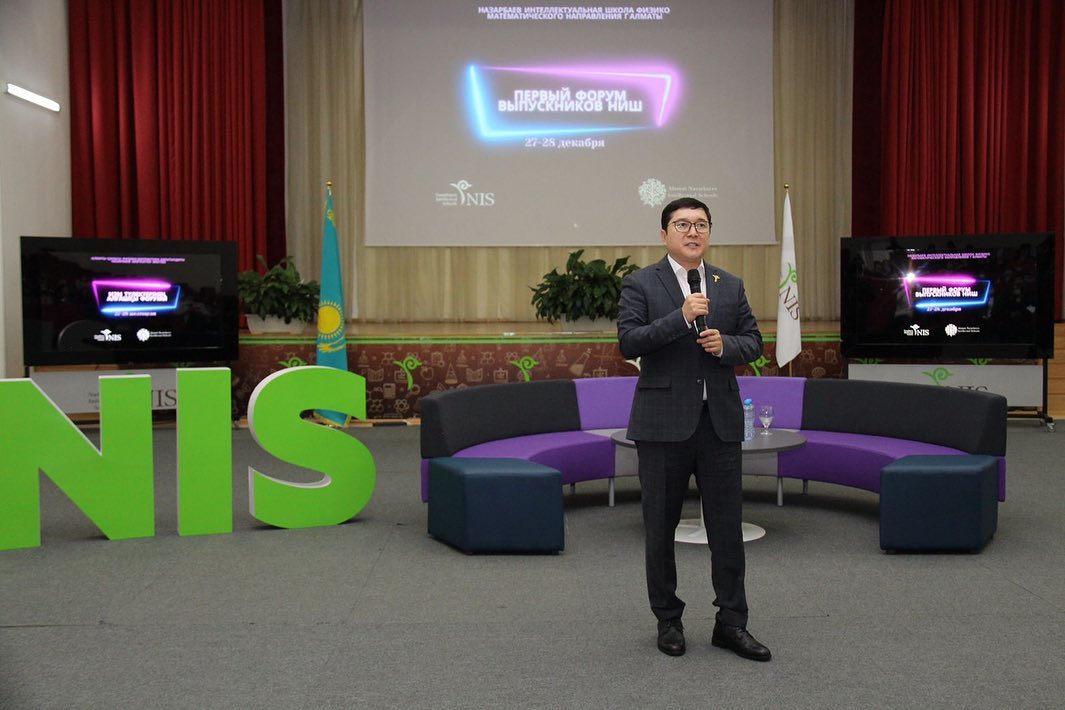 Первыми делегатов форума приветствовали сегодняшний директор школы Ермек Пайзов и учителя, которые преподают со дня открытия. К родной NIS подключились выпускники, которые сегодня учатся в самых престижных ВУЗах многих стран.