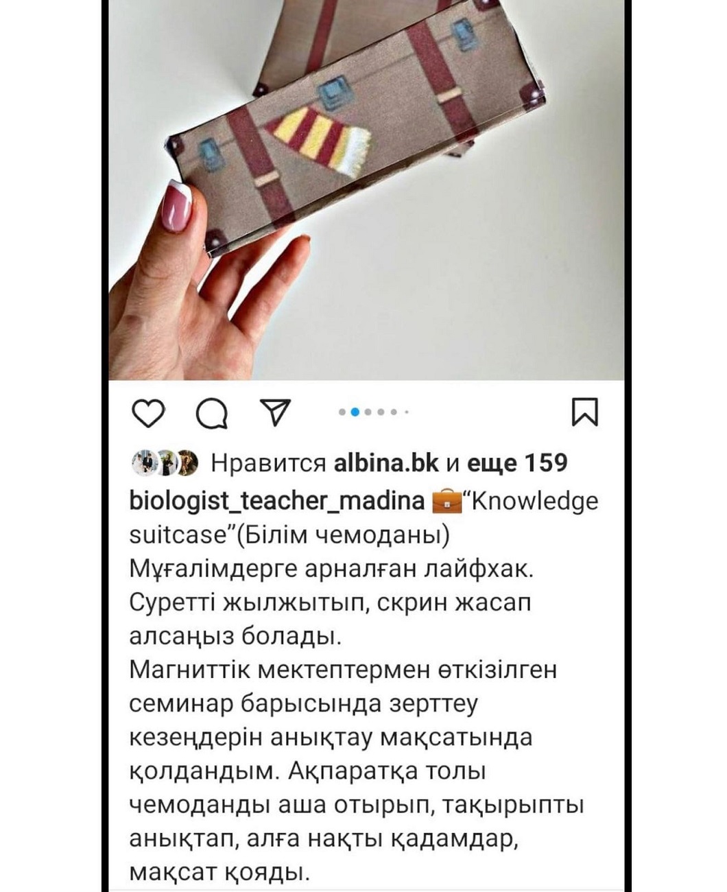 Жас ұстаз – заман талабына сай, әлеуметтік қарым-қатынасқа түсе алатын мұғалім ғана емес, «контент – мейкер» саласын игеріп, оқушылардың пәнге деген құштарлығын оятып, арттыра білген білікті маман. Қоршаған ортаға деген қызығушылығы кішкентай кезінен басталған жас ұстаз биология пәнін тереңірек білгісі келетін оқушыларға пайдалы кеңестер, тақырыпты түсінудің оңай жолдары және мұғалімдерге арналған жаңа әдіс-тәсілдер ұсыну мақсатында Instagram парақшасын жүргізеді.