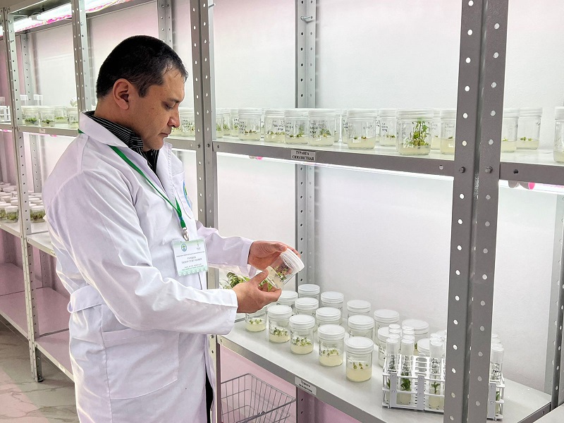 «Микроклональное размножение растений – способ получения растений, генетически идентичных посадочному материалу, с использованием техники in vitro. Одним из основных преимуществ метода является сокращение периода размножения и высокий процент приживаемости растений», – пояснил Тимур Турдиев.