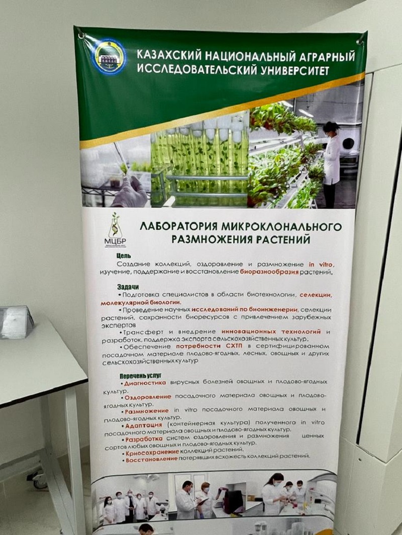 Как рассказал Тимур Турдиев, кандидат биологических наук, ассоциированный профессор, ведущий научный сотрудник лаборатории микроклонального размножения растений Казахского национального аграрного исследовательского университета, это редкое, священное растение – туранга сизолистная, находящееся на грани исчезновения, сейчас выращивается в светокультуральной комнате лаборатории микроклонального размножения растений, предназначенной для культивирования растений в условиях in vitro.