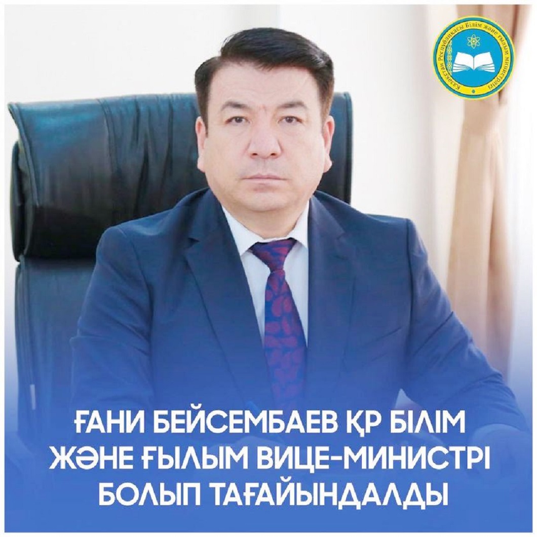 Қазақстан Республикасы Үкіметінің Қаулысымен Ғани Бектайұлы Бейсембаев ҚР Білім және ғылым вице-министрі қызметіне тағайындалды, – деп хабарлайды осы салалық ведомстваның баспасөз қызметі.