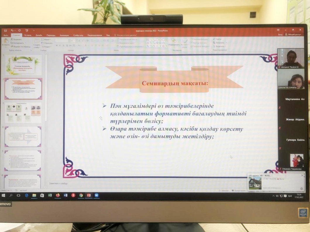 Аудандық білім бөлімінің ұйғарымымен біздің мектептегі педагог-зерттеуші ұстаздар «Формативті бағалаудың түрлері» тақырыбында арнайы онлайн семинар ұйымдастырды. Басты мақсат – мұғалімдер өз тәжірибелерінде қолданылатын формативті бағалаудың тиімді түрлерімен бөлісу, өзара тәжірибе алмасу және өзін-өзі дамытуды жетілдіруге бағытталған болатын.