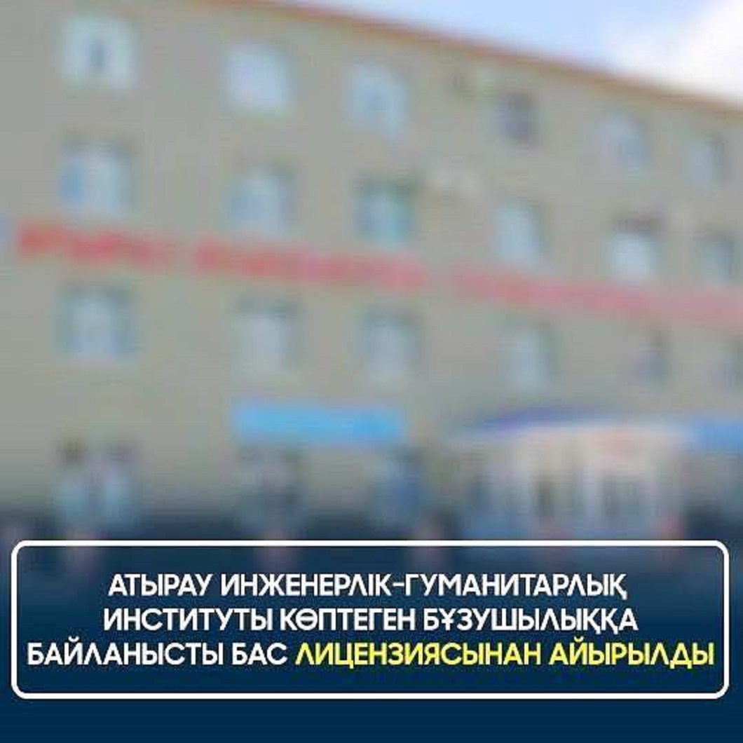 Атырау инженерлік-гуманитарлық институты бас лицензиясынан айырылды. Мұндай шешімді Атырау қаласының әкімшілік құқық бұзушылықтар жөніндегі мамандандырылған соты шығарды. ҚР БҒМ Білім және ғылым саласындағы сапаны қамтамасыз ету комитеті университет жұмысындағы көптеген заң бұзушылықты анықтады, – деп хабарлайды ҚР Білім және ғылым министрлігінің баспасөз қызметі.
