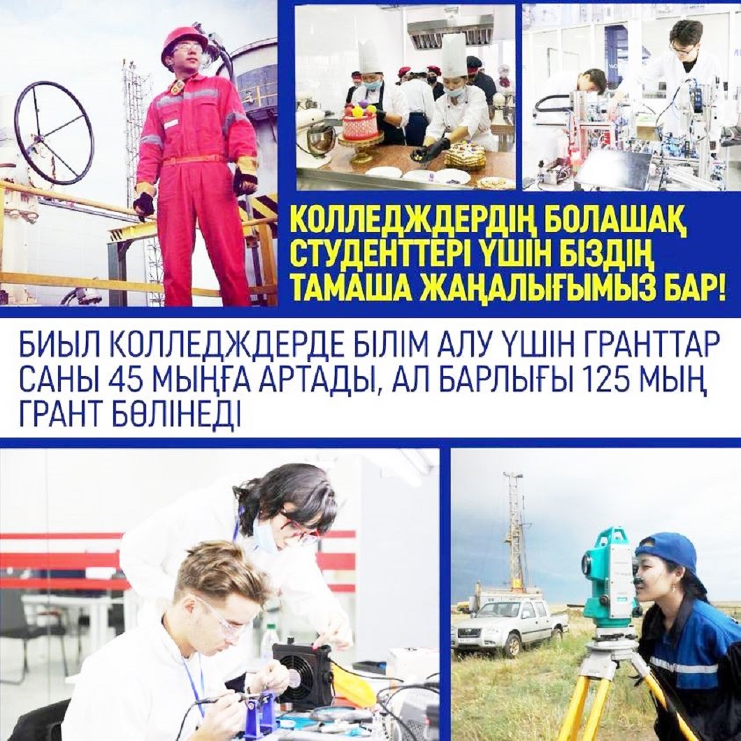 Колледждердің болашақ студенттері үшін біздің тамаша жаңалығымыз бар! Биыл колледждерде білім алу үшін гранттар саны 45 мыңға артады, ал барлығы 125 мың грант бөлінеді, – деп хабарлайды ҚР Білім және ғылым министрлігінің баспасөз қызметі.