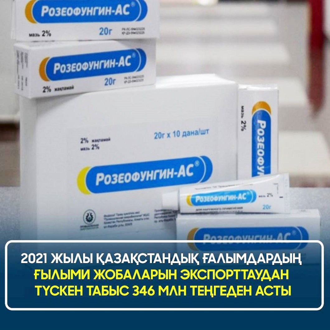Тек 2021 жылы қазақстандық ғалымдардың 15 ғылыми әзірлемелері Қытай, Ресей, Түркия, Грузия, Чехия және Қырғызстан сияқты елдерге экспортталды. Ал ғылыми әзірлемелер экспортынан түскен табыс 346 миллион теңгеден асты. Олардың арасында кобальт-57 радиоизотопы, жел және күн энергиясын өндіретін генераторлар, зеңге қарсы дәрілік препарат, медициналық, тағамдық және тұрғын үй-жайларды санациялауға арналған биопрепараттар, сүт сарысуы негізіндегі сусындар, пробиотиктер және басқалары бар.