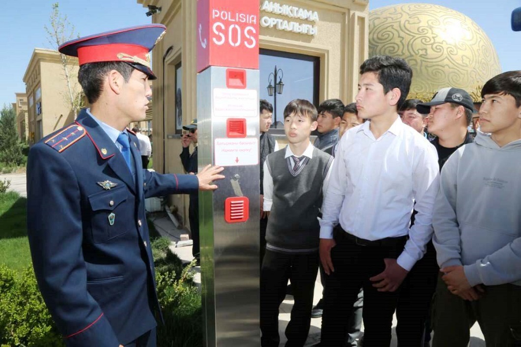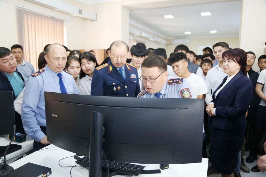 Оқушыларды облыстың бас полицейі – Түркістан облысы ПД бастығы полиция генерал-майоры Мұрат Қабденов қарсы алып, полиция қызметі туралы айтып берді. Бірінші кезекте балаларға жедел басқару орталығы көрсетілді, онда көшелердің қауіпсіздігі мен қоғамдық тәртіпті қадағалау бойынша тәулік бойы бейнебақылау жүргізіледі.