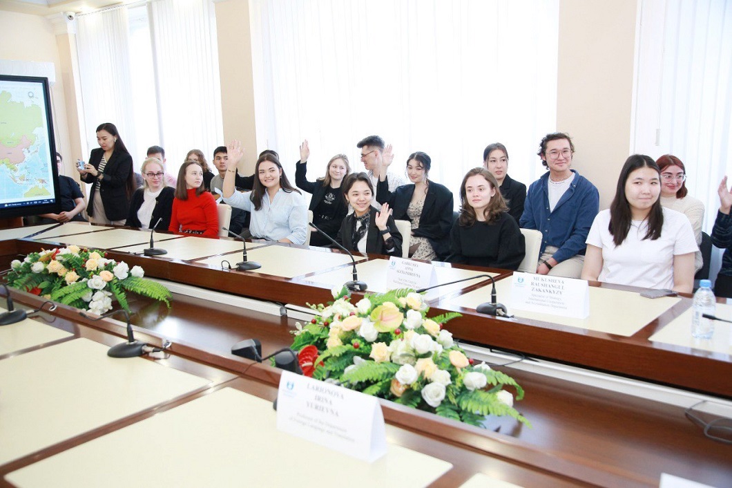 Сондай-ақ, жұмыс сапары барысында Ку-Хонг-Сок мырза “Шет тілі: екі шет тілі” білім беру бағдарламасының студенттеріне Оңтүстік Корея туралы дәріс оқыды. Студенттерге корей және орыс тілдерінде мәдениет, табиғат, тарих, спорт, экономика және т.б. сипатталған “Корея: кеше және бүгін” атты кітаптар сыйға тартылды. Студенттер дәріс соңында естелік суретке түсті.