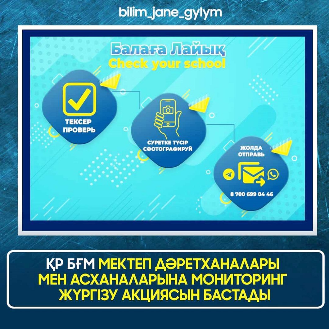Акцияға кез келген ниет білдіруші: мектеп оқушылары, еріктілер, балалар өкілдігі, мұғалімдер, ата-аналар, үкіметтік емес ұйымдардың өкілдері және тағы да баса жанашырлар қатыса алады. «Check your school» атты бірінші кезеңнен басталатын науқан шарттарымен таныссақ: қатысуға ниет білдіргендер 8 700 6990446 нөміріне WhatsApp пен Telegram-ға және https://t.me/Balagakz_bot – сілтемесіне нормаға сәйкес келмейтін немесе талап сақталмаған мектеп дәретханалары мен асханаларының фото және видеоларын жібере алады.