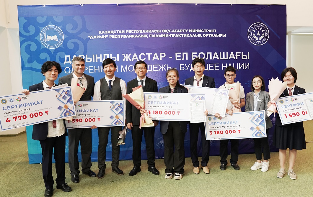 Министр халықаралық олимпиадалардың жүлдегер оқушыларын салтанатты марапаттау шарасына қатысқан шәкіртімізге ізгі тілегін арнап, әлемдегі ең үздік 5 халықаралық олимпиаданың қатарына кіретін International Olympiad in Informatics білім бәйгесінде жеткен жеңісін ынталандыру мақсатында 3 180 000 теңгенің сертификаты мен Алғыс хатын табыс етті.