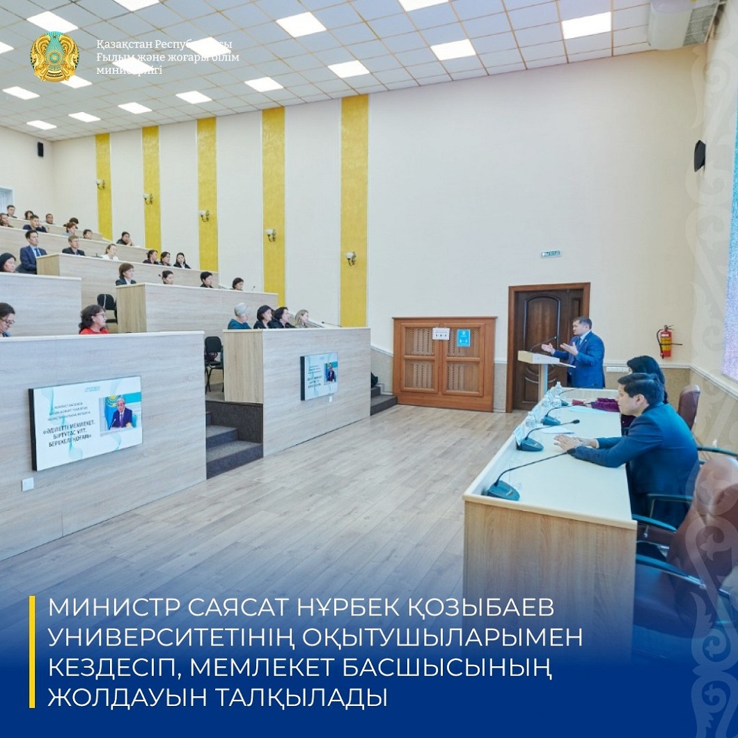 Министр Саясат Нұрбек Қозыбаев университетінің оқытушыларымен кездесіп, Мемлекет басшысының Жолдауын талқылады