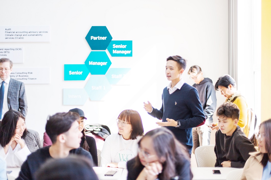 Талғат Нәрікбаев өз сөзінде, КАЗГЮУ Экономика мектебі құрылған күннен бастап «Үлкен төрттік» компаниялары біздің студенттердің серіктес жұмыс берушісі, әсіресе «Есеп және аудит» және «Қаржы» бағдарламалары бойынша көп сұраныста. Осыған байланысты, кейінгі жылдарда біз тиісті агенттіктермен тығыз академиялық ынтымақтастық орнатып, АССА, GARP, CIMA сәйкес біздің білім беру бағдарламаларымызды аккредитациядан өттік, тіпті біздің түлектер ішкі емтихандарды сәтті тапсырған жағдайда осы сертификаттардың бірқатар «қағаздарын» тапсырудан босатылады. Айта кету керек, EY–де тағылымдамадан өтушілер саны екі есе өсті және бұл өте тұрақты үрдіс.