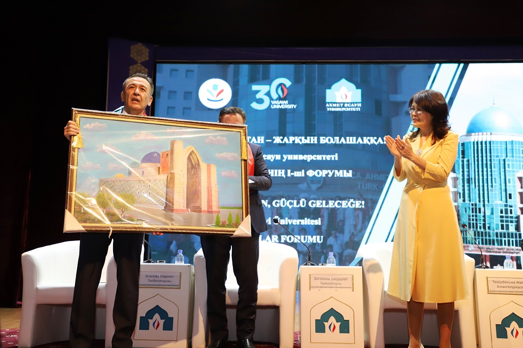 Біріншісі – Қазақ хандығының астанасы болған Түркістанды қайта жандандыру, екіншісі – Түркістанға түркі дүниесінің назарын аудару, үшіншісі – ұлттық рухта тәрбиеленген жастарды даярлау. Міне, бүгінде осы мақсаттардың бәрі орындалғанына куә болып отырсыздар, – деді Мұрат Жұрынұлы. Шараға Қарағанды Индустриалық университеті КеАҚ Басқарма төрағасы-Ректоры, оқу орнымыздың бұрынғы ректоры Болатбек Абдрасилов те арнайы келіп, құттықтауын арнап, сыйлығын тарту етті.