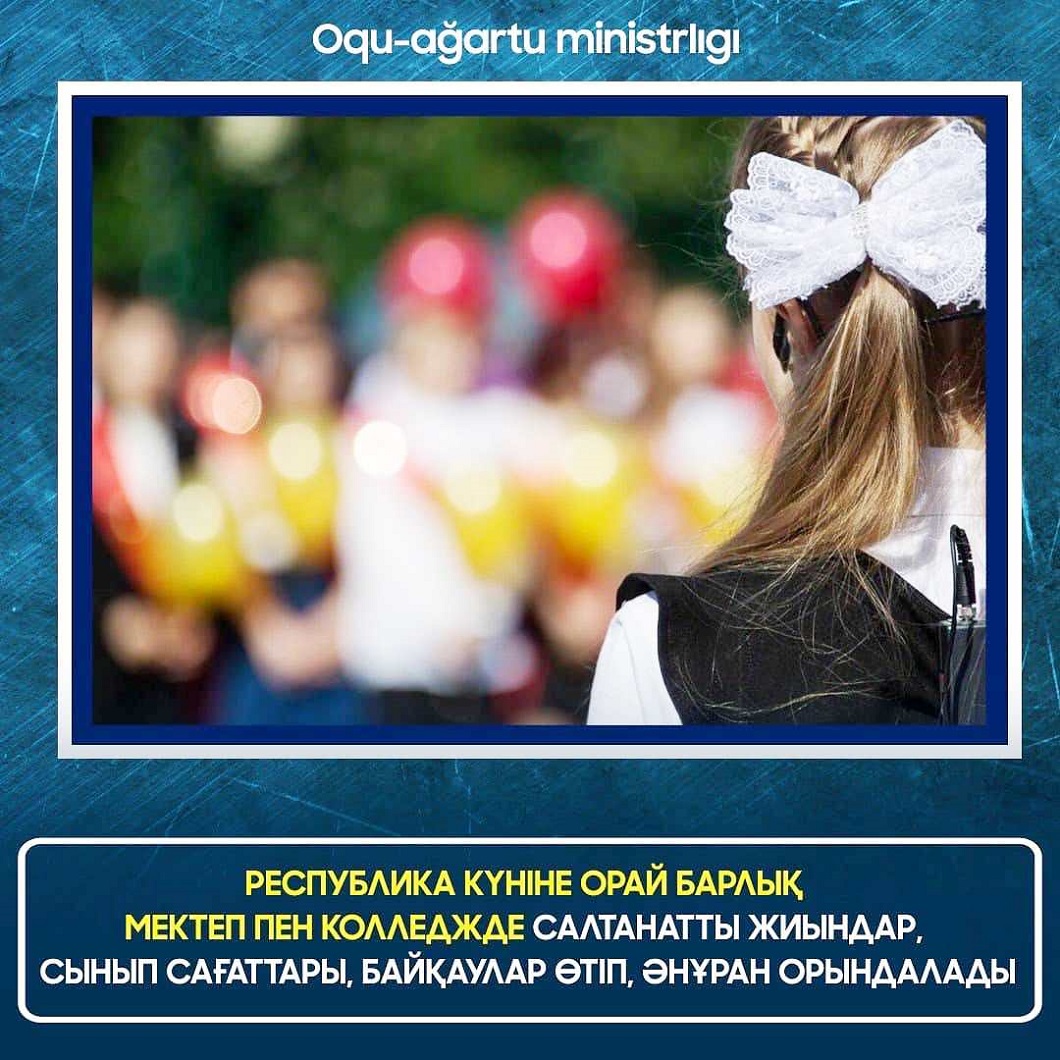 «Еліміздің білім беру ұйымдарында Республика күнін мерекелеу жөніндегі республикалық іс-шаралар жоспары бекітілді. Республика күні – мемлекеттің символын айқындайтын маңызды мереке. Бала кезінен бастап балаларды Отанға деген сүйіспеншілікке, мемлекеттік рәміздерге, ұлттық және мемлекеттік мерекелерге құрметпен қарауға баулу маңызды. Осы себептен еліміздегі барша оқушы үшін шығармашылық, танымдық, спорттық, мерекелік іс-шараларды жоспарлап отырмыз, – дейді ҚР Оқу-ағарту министрлігі Орта білім комитетінің төрағасы Гүлмира Кәрімова.