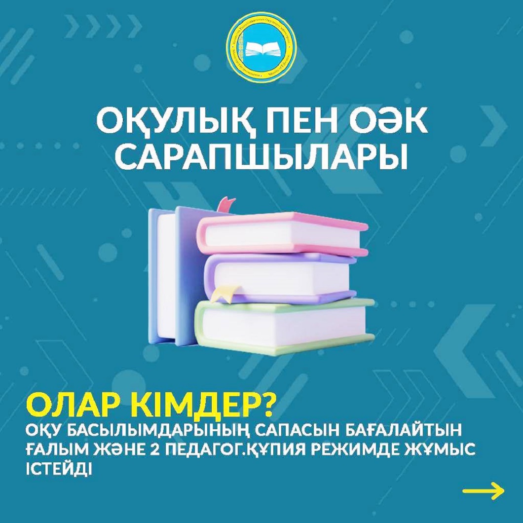 Загрузка...Айта кетейік, 2021 жылы Дүниежүзілік банктің қолдауымен «Орта білімді жаңғырту» жобасы аясында BMSO-ның 40 штаттық және екі мың сырттан тартылған сарапшысы оқыту курсынан өтті. Сарапшылар курс барысында заманауи оқулықтардың құрылымы мен мазмұнына қойылатын талаптарды зерделеп, оқу басылымдарын, оның ішінде цифрлық оқулықтарды бағалаудағы жаңарған критерийлермен танысты.