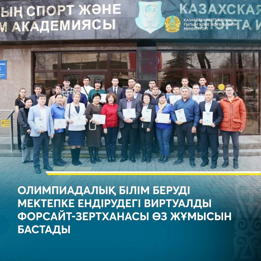 ҚР ҒЖБМ гранттық қаржыландырылған «Жалпы білім беретін мектептің жұмыс жүйесіне олимпиадалық білім беруді енгізудің виртуалды форсайт-зертханасы» жобасы аясында Қазақ спорт және туризм академиясының ғалымдары жобаның міндеттеріне сәйкес виртуалды форсайт-зертханасының Web сайтын әзірлеп, мектеп мұғалімдері мен магистранттарға таныстырылымын жасады, – деп хабарлайды рсы бейіндік ведомстваның баспасөз қызметі.