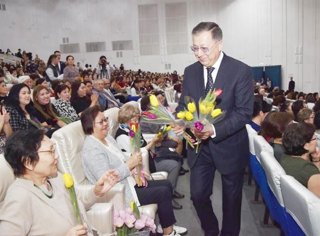 Сонымен қатар ректор әйелдердің қоғамдағы айрықша рөліне тоқталып, Әл-Фараби атындағы ҚазҰУ-дың оқытушы-профессорлар құрамының 68 пайызын әйелдер құрайтынын атап өтті. Оның ішінде 347 ғылым докторы, 572 кандидат, 1 ҚР ҰҒА академигі бар. Біз ғалым аруларымызды мақтан тұтамыз! Келесі жылы университеттің 90 жылдығы аталып өтеді. Қазірден бастап айтулы мерейтойды лайықты қарсы алу үшін белсенді дайындық жүріп жатыр», – деді ҚазҰУ басшысы.