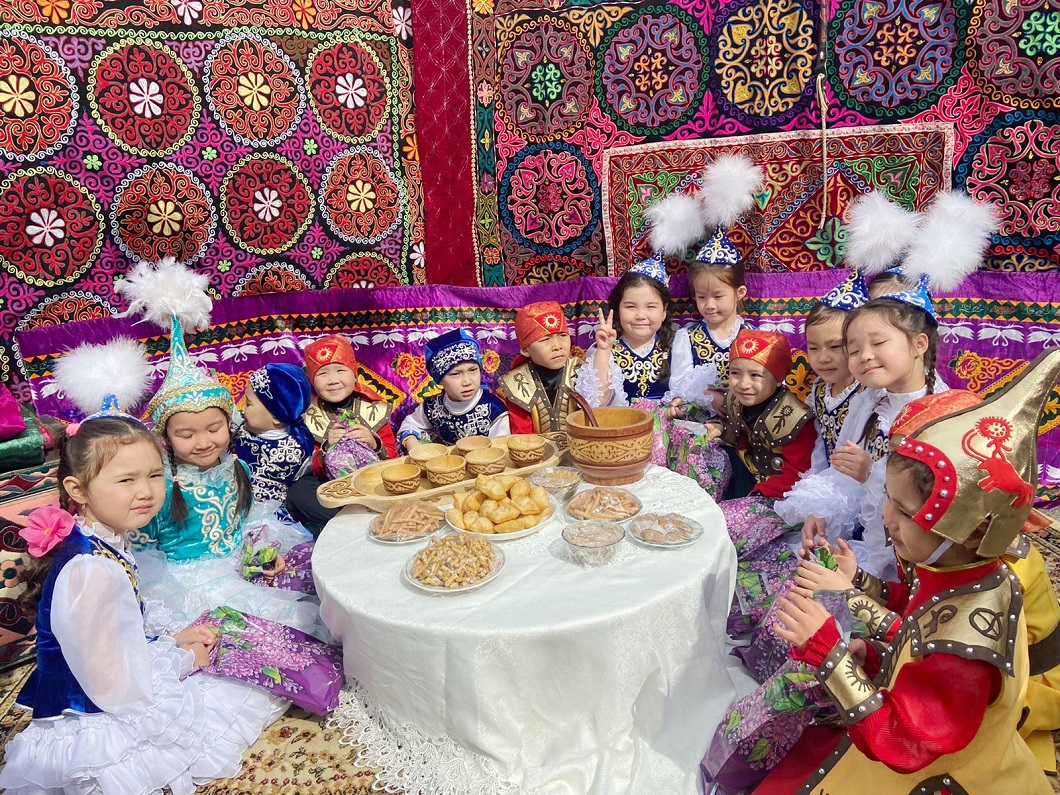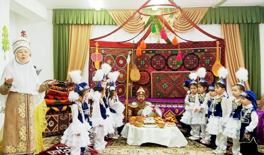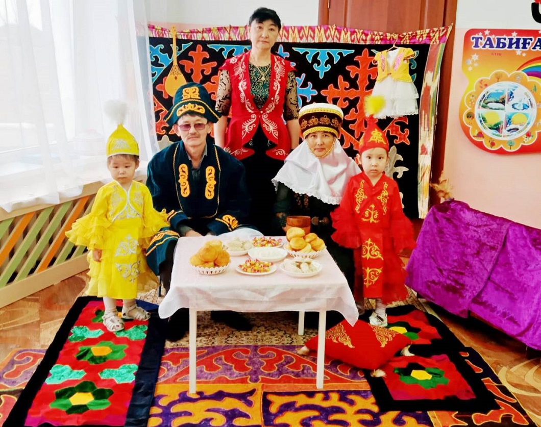 Мектеп жасына дейінгі балалармен әңгімелесу,тілдерін дамыту сабақтарында баланың жеті атасын білуі, жеті атасының атын біліп қана қоймай, олардың қандай адам болғанын, ел-жұрты үшін еткен еңбегі, өнегелі істері жайлы әңгімелер айтылады. Сонымен қатар дастарханға қойылатын күнделікті өмірде қолданылатын ас-тағамдарының атауларын, әдет-ғұрыптарын танып, ұғынып бойына сіңіріп отырған бүлдіршіндер ұрпақтан – ұрпаққа мұра етіп жеткізе беретініне кәміл сенеміз.