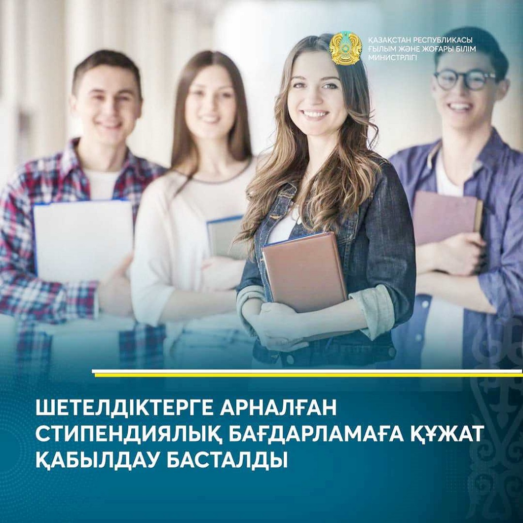 Еліміздегі жоғары оқу орындарында білім алуға арналған стипендиялық бағдарламаға құжат қабылдау басталды. Бағдарламаға шетел азаматтары, оның ішінде Қазақстан Республикасының азаматығы жоқ қазақ ұлтының өкілдері қатыса алады. Өтініш беру онлайн форматта ҚР ҒЖБМ Жоғары білімді дамытудың ұлттық орталығының https://enic-kazakhstan.edu.kz/ веб-порталы (веб-сайты) арқылы жүзеге асырылады.