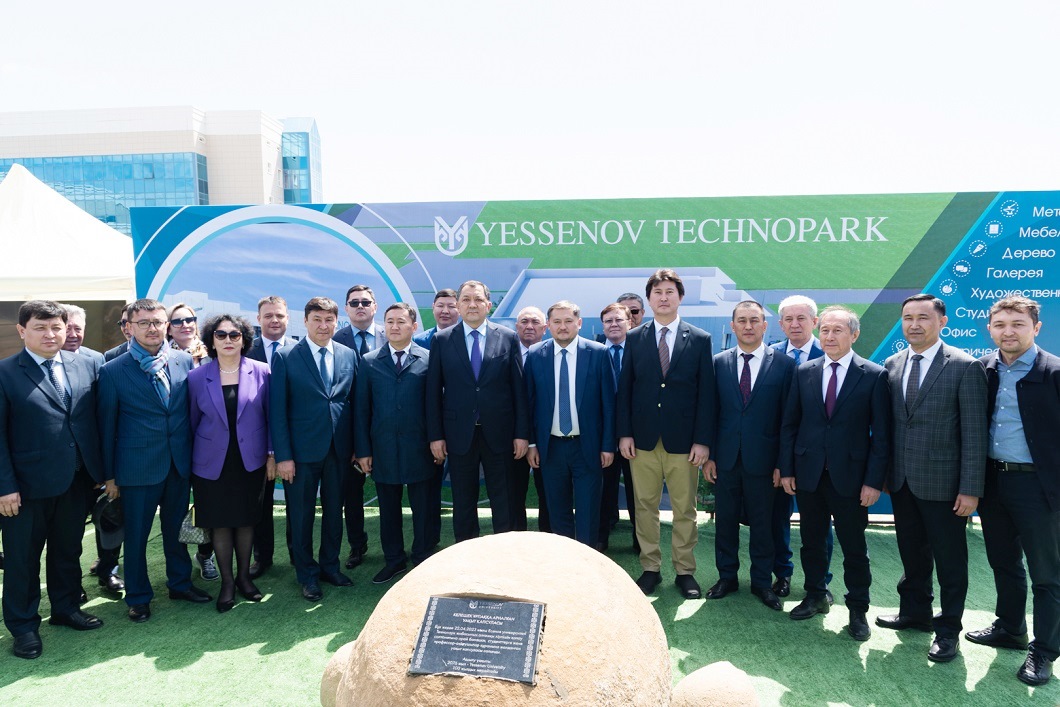 Технопарк кешенінде орнатылған ескерткіш тасқа облыс әкімі Нұрлан Ноғаев, министр Саясат Нұрбек және университет президенті Берік Ахметов уақыт капсуласын салды. Капсула ішіндегі болашаққа жазылған аманат хат 2076 жылы – Есенов университетінің 100 жылдық мерейтойында ашылады деп жоспарланған. Сондай-ақ қонақтарға Жылыжай, Жасыл технологиялар орталығы, Су тұшыту қондырғысы таныстырылды. Одан ары мәртебелі меймандар студенттік саябақ аумағына алғашқы түп талдарын отырғызды.