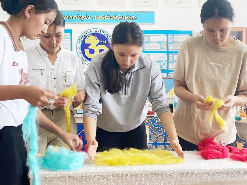 – Оқушылар қой жүнінен түрлі ойыншықтар, суреттер, әр түрлі сувенирлер жасай алады, сонымен қатар киіз басу өнері арқылы жүннен белдемше, көйлек, қолғап, бешпет, тымақ, сәукеле де жасай алады. Соның нәтижесінде үйірменің оқушылары аудандық, облыстық, республикалық және халықаралық жетістіктерге ие болды, – дейді облыстық білім басқармасындағы бөлім басшысы А.Галимова.