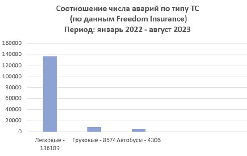 Интересные данные озвучили специалисты и по типам автомобилей, попадающих в аварии на дорогах Казахстана. Так, по их данным, с января 2022 года по август 2023 года, лидируют в этом антирейтинге легковые машины – 136 189 страховых случаев, следом идут грузовые автомобили – 8 674 страховых случаев, на третьем месте по аварийности – автобусы, 4 306 страховых случаев соответственно. Это неудивительно, так как по состоянию на 1 августа 2023 года, по данным Бюро нацстатистики РК в Казахстане из 5,015 млн зарегистрированных машин самой многочисленной группой считаются легковые – 4,408 млн (87,9%), второй по численности являются грузовые – 0,501 млн (10%), а третье место занимают автобусы – 0,105 млн (2,1%).