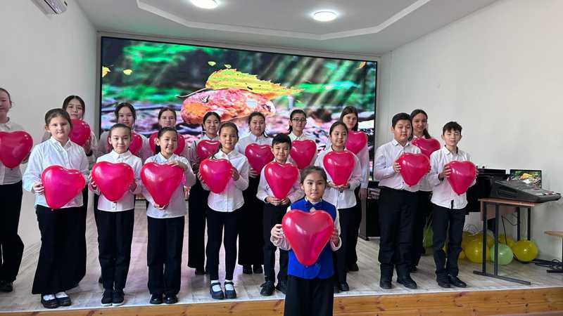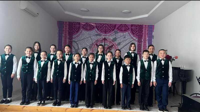 В моем хоре «Күншуақ» 27 замечательных, талантливых детей разного возраста, от 9 до 14 лет. Это смешанный хор, и я с удовольствием работаю с этой прекрасной группой.
