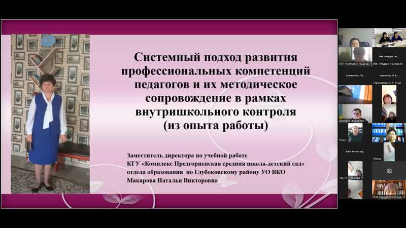 Макарова Наталья Викторовна- заместитель директора по учебной работе, КГУ «Комплекс Предгорненская средняя школа-детский сад» отдела образования по Глубоковскому району УО ВКО «Системный подход развития профессиональных компетенций и их методическое сопровождение в рамках внутришкольного контроля»;