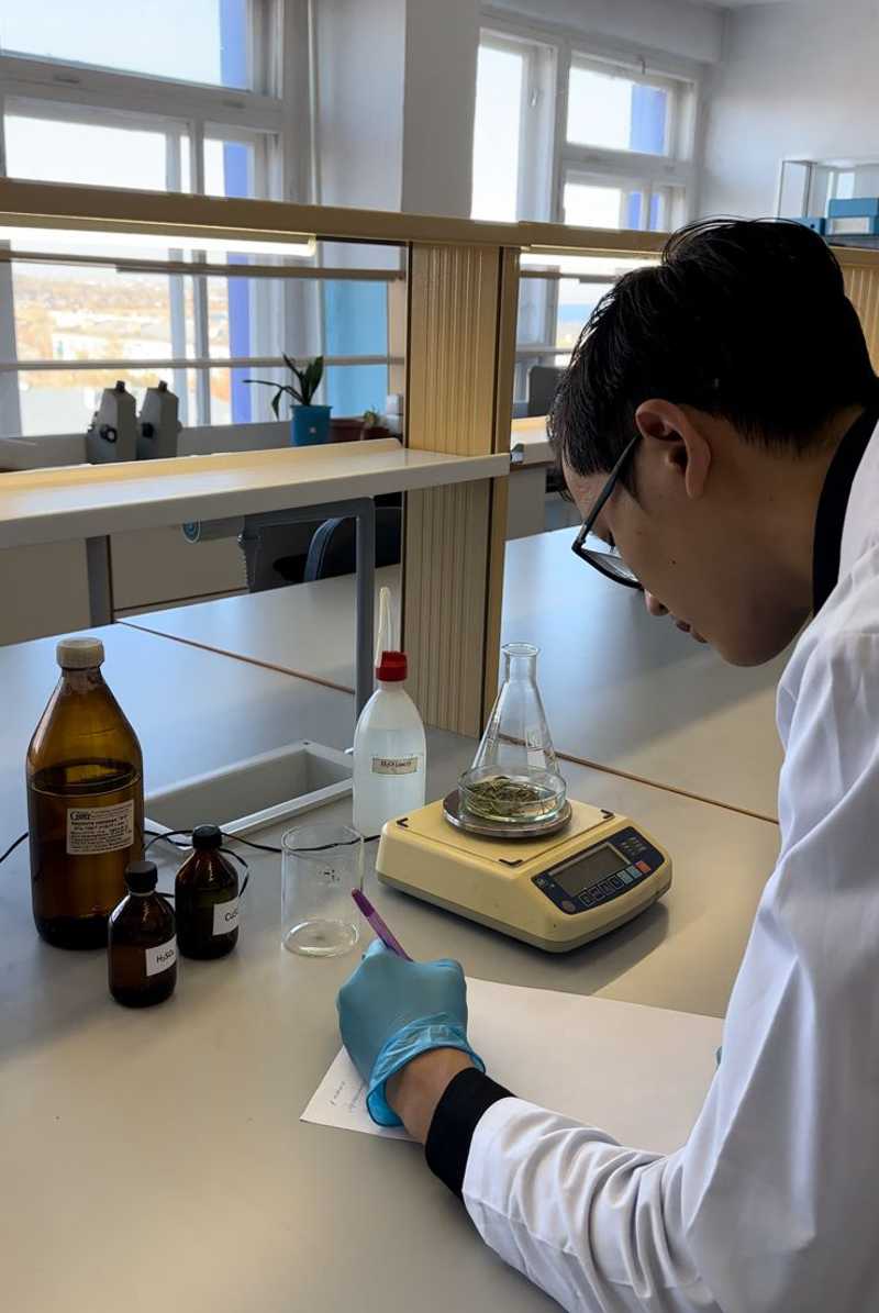 Кроме исследования в лаборатории школы, Бекзат для наиболее качественного и точного анализа состава вытяжки использовал анализ на ЯМР-спектрометре. Процесс обработки ЯМР-спектров Бекзат проводил под руководством профессора, к.х.н., зав. лаборатории ЯМР спектроскопии КГУ имени Шокана Уалиханова Толегена Сейлханова.